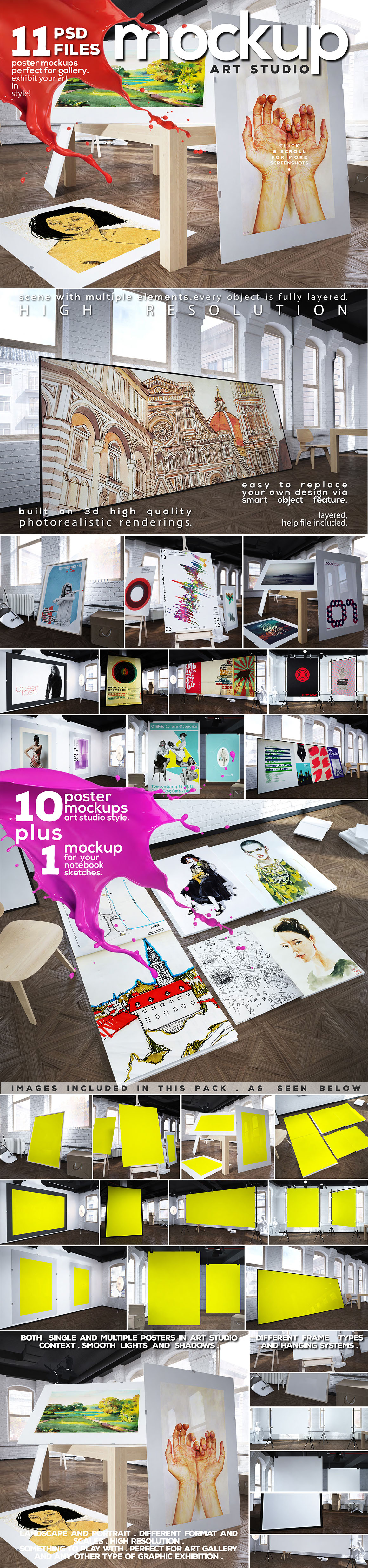 Features: 11 PSD files ( different formats and sizes), Easily editable via smart object, High resolution 2500, Both hanging posters and studio standings (see preview images), Photo-realistic, Realistic Depth of field, Suitable for posters that are 50×70, 30×70, A3, A2, A1, A0 and other variations (see preview images).