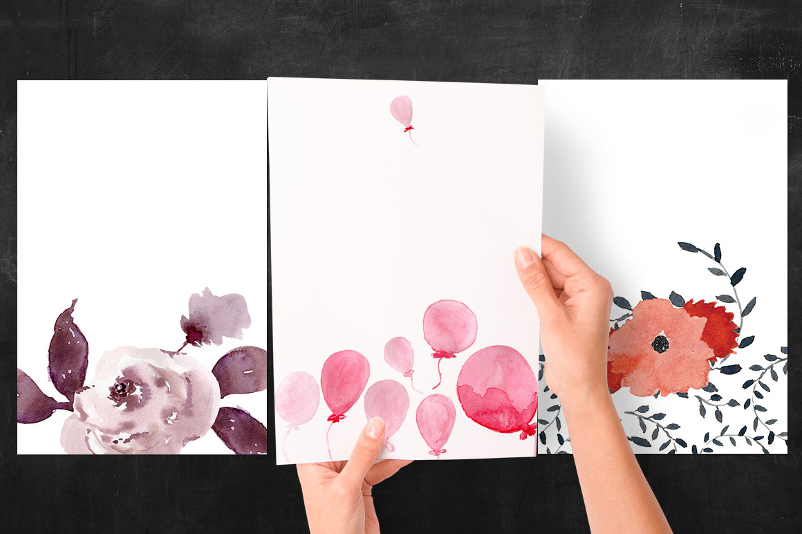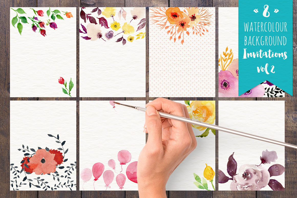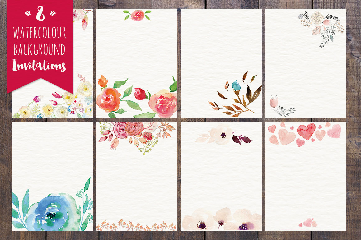 8 PNG files invitation backgrounds ready to print. Send your guests elegant invitations: parties, birthdays, weddings, save the date, celebration etc – with your own text. Size all files: 5,25 x 7,25″ full bleed, 300 dpi.