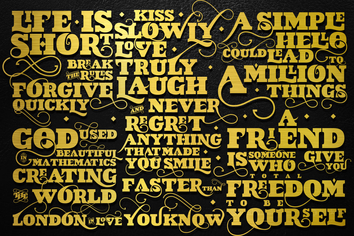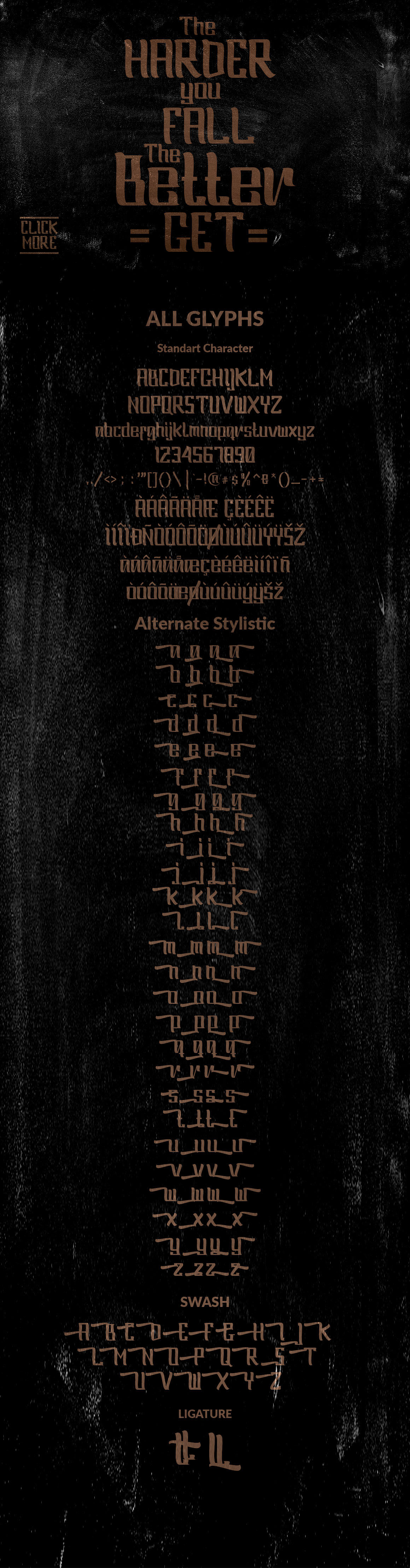 Amazing bold and serif custom font. The Features of this fonts is: Discretionary Ligatures, Standart ligatures, Stylistic Alternates.