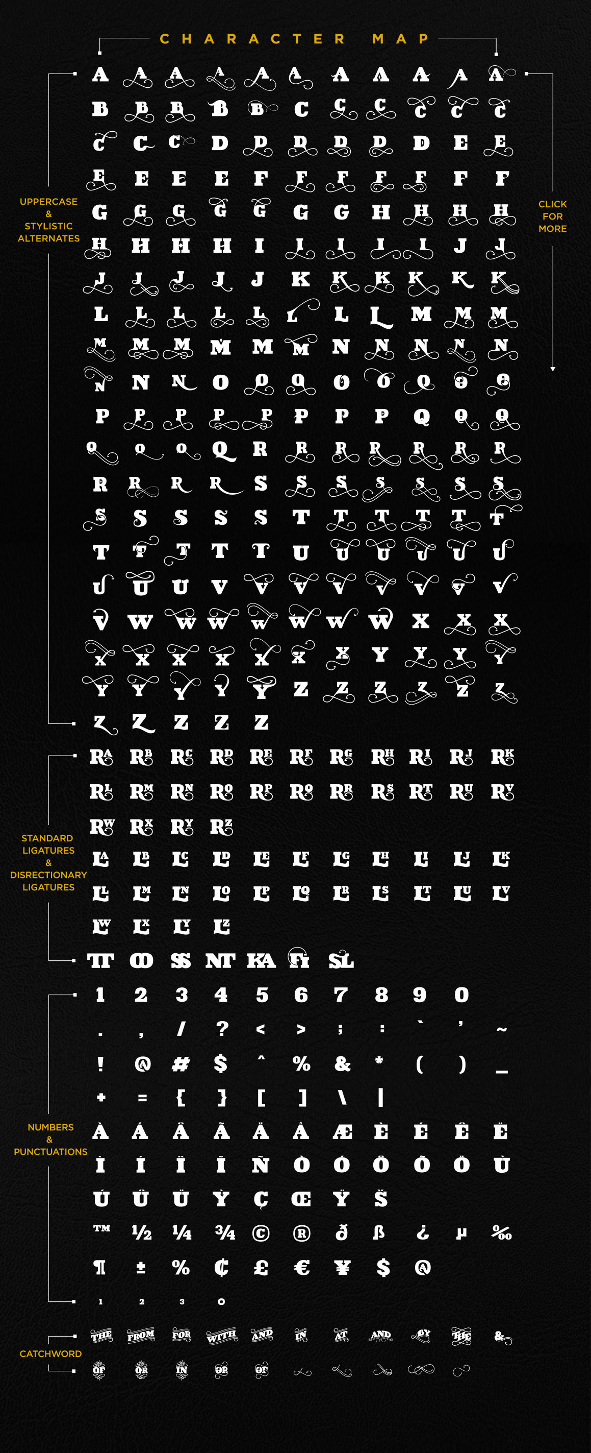 Scarlet is multi-purpose display font. Can be used for various purposes such as posters, logos, t-shirts, signage, businnes card, magazines, book covers, wedding invitations, greeting cards etc. Scarlet features 302 glyphs and 130 alternate characters. including initial and terminal letters, alternates, ligatures and multiple language support.
