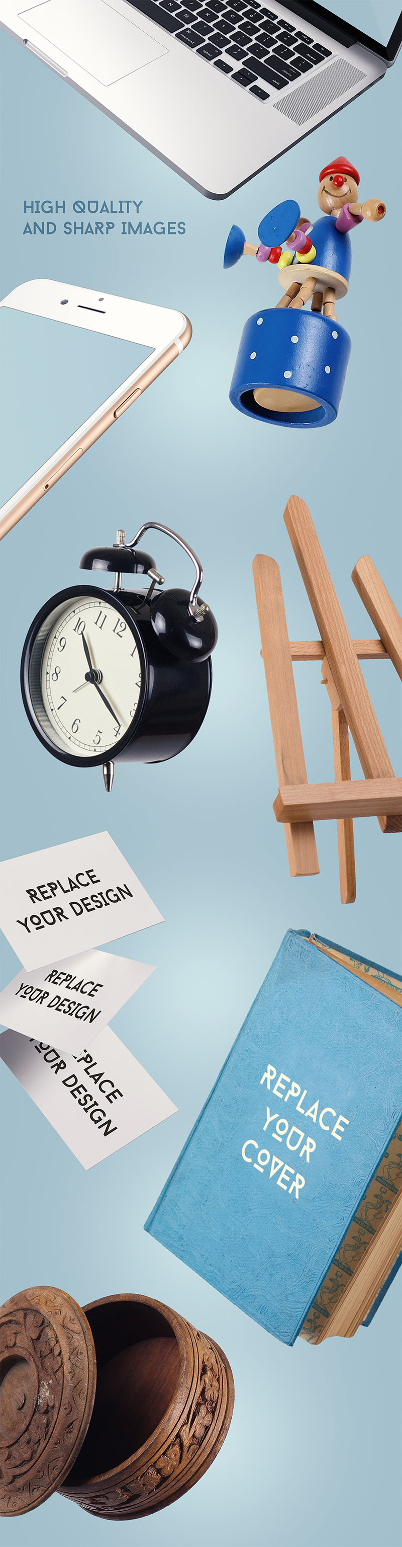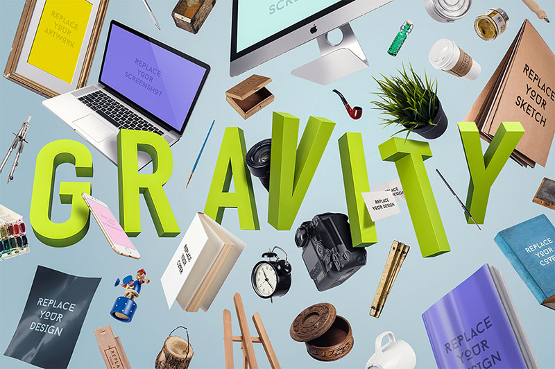 Again we’ve made a file that let’s you to create limitless presentations. With this file you will get high quality images and mock ups to create unlimited presentations. We’ve tried a different concept for presenting jobs. Just worried about how a image will we get when we “blow” objects. After that we’ve rented a Zero-G Plane and made a long flight to take all of these objects photos. Sure. Just kidding. We’ve hung up objects and got some photos. When you’re using this file you will have so much fun. Drag & Drop any object into your scene, move, rotate or scale them and give them some blur to get focus on your work etc… In fact your are so free and you have no GRAVITY. This is the easiest and funniest way to play with some items in the air. You can get very unique and remarkable presentations for your clients or for your own portfolio. Anymore we’ve added some ready made presentation stages to make your work easier. You can create with this ready made PSD files or you can get inspirations from them. Watch Demo Video on Vimeo ; http://vimeo.com/user9269157/zerogravity