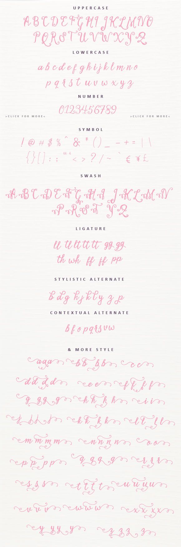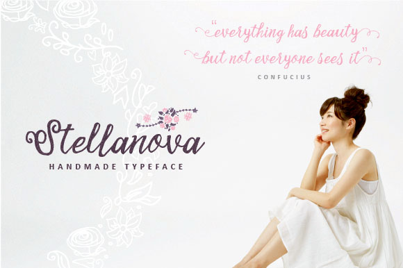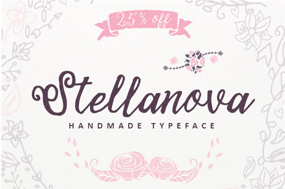 Stellanova Typeface is a handmade script typeface. Stellanova is suitable for wedding invitation, any greeting cards, retro / vintage design style, or any design that needs natural and personal touch. Mix and match the alternate characters to add an attractive message to your design. 338 glyphs and alternate character contain with opentype features. Stylistic alternates, Ornament, Swash and more.You can access all those alternate characters by using OpenType savvy programs such as Adobe Illustrator and Adobe InDesign.