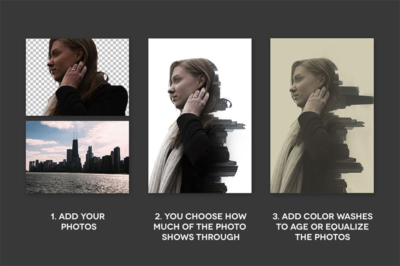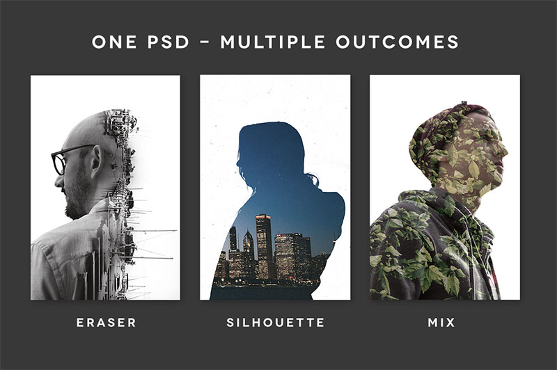 Get seriously cool double exposure effects with ExposureX2. Doing a quick Google image search on double exposure brings up some amazing creations but to achieve effects like this requires quite a long process. So that’s why I’ve made a smart PSD which lets you do it just a few clicks. Even more, I’ve teamed up with Photographer Justin Fennert, to include 7 pre-cutout portraits and over 30 photos that can make your own creations with. This Photoshop document requires just a basic knowledge of layer masks using the eraser tool and that’s it! Check out the video run through to see how to produce the effects in just minutes. Video: http://vimeo.com/112098140