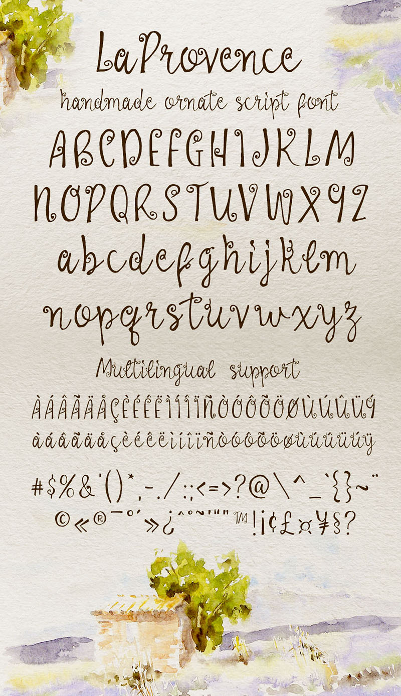 La Provence Font is a handmade calligraphic type. This font contains uppercase, lowercase and multilingual glyphs.
