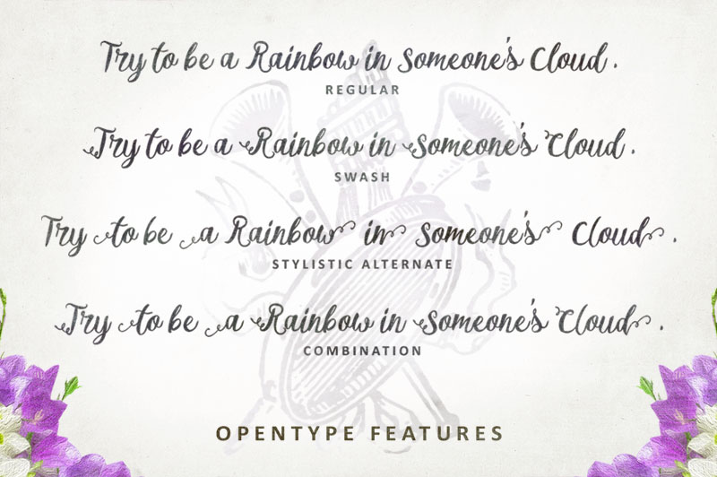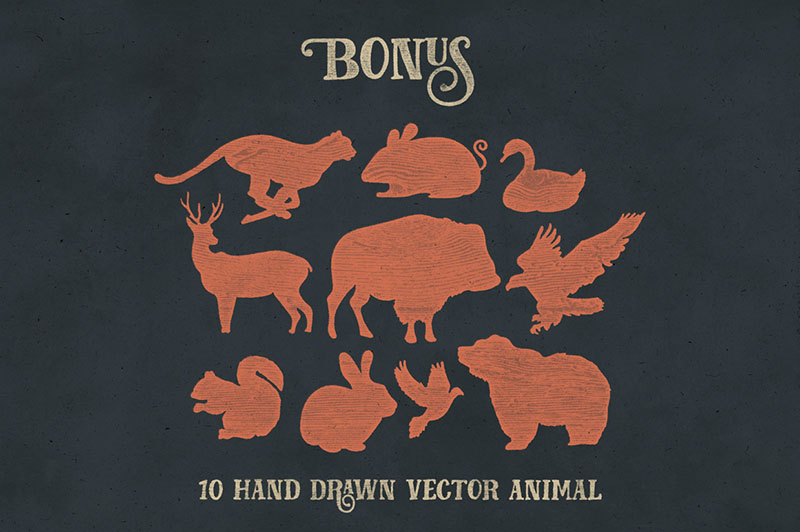 Fairy Tales is a display type, inspired by classic advertisements and movie posters. Although it also suitable for another purpose such as headline, insignia, badge, wedding invitation, greeting cards, etc. With a combination of highly vintage feels and the OpenType features put together on it, you can easily create an harmonic attractive message for your design. The Fairy Tales font comes up with 231 glyphs and The alternative characters which can be accessed by using OpenType savvy programs such as Adobe Illustrator and Adobe InDesign. This font also packaged together with the extra bonus: 10 hand drawn vector animal to enhance your design project. You’ll get it in .AI Illustrator and .EPS Vector format.