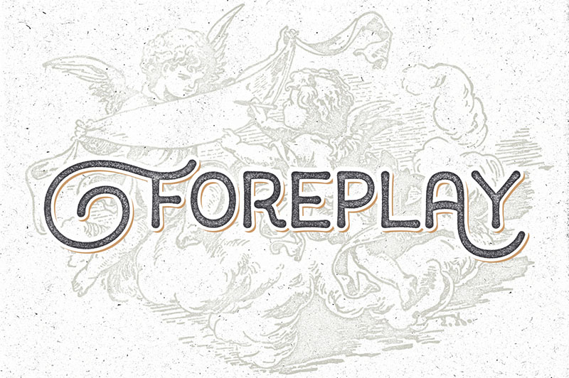 Foreplay is a fun display font intended to use in retro and vintage design styles. It is suitable for poster, t-shirt, lettering, greeting card, etc. Foreplay contains ornamental uppercase that can be used to create a stand out and attractive message.