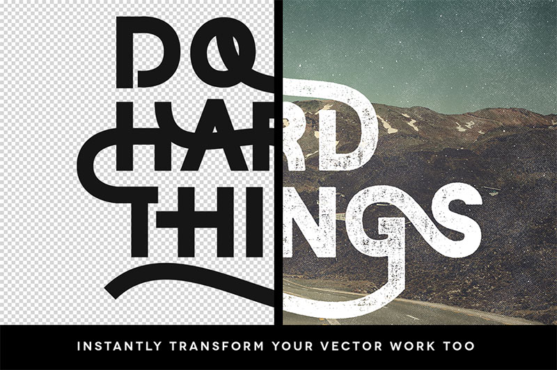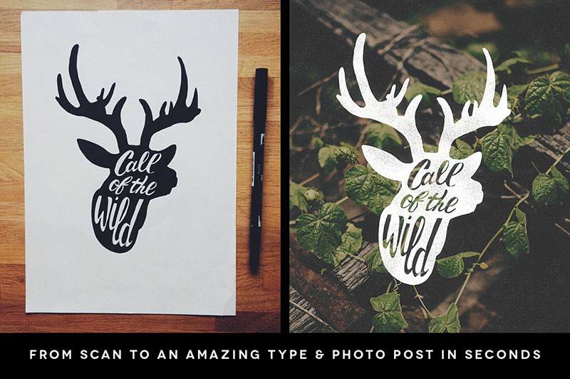 SwiftType’s main function is to convert your pen & ink hand lettering scans or vector text into beautiful type over photo artworks. Also including Textures, Light Leaks, Filters and Photos in well organized folders, you’ll have everything you need in one Photoshop document to quickly and easily create retro Instagram inspired art in seconds! Need to see it in action first. Quick video demo: http://vimeo.com/106283654