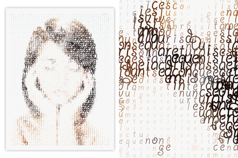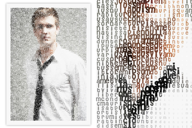 With Typo-Painter for Adobe Photoshop, you can create cool typographic designs and portraits from your photos. The result can also be saved in vector EPS format and can be edited using vector tools like Adobe Illustrator or CorelDraw. You can use your own text, or the plugin will use a long Lorem Ipsum phrase.