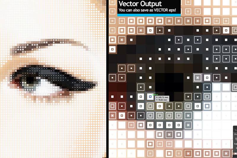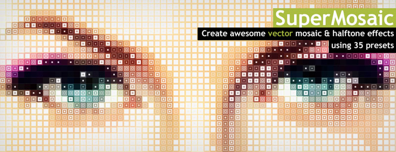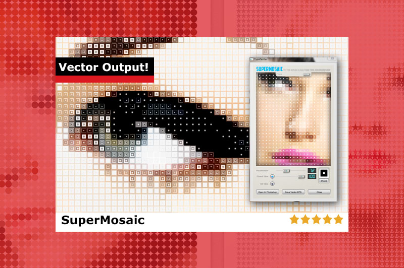 A Vector Mosaic & Halftone Tool. Using SuperMosaic, you can create cool halftone and mosaic effects and open the result in Photoshop or you can save it as an editable VECTOR .eps file and open in a vector tool such as Adobe Illustrator and CorelDRAW. Useful for especially large prints because you can get vector outputs. Your prints will be sharp and clean!