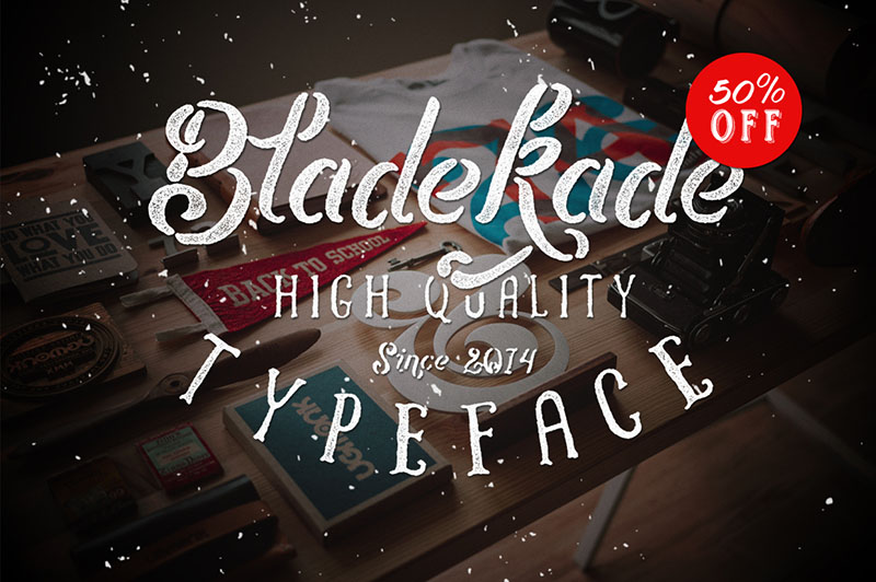 Bladekade is Stancil script font with a hand drawn style. Bladekade have some alternate characters. Very suited for lettering, logo brand, clothing, posters and others.