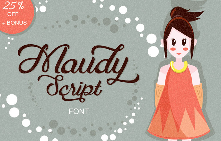 Maudy Script is bold, modern & multipurpose typeface that natural handwriting brush lettering. Suitable for logo, packaging, cover book title, poster, t-shirt, wedding invitation, greeting card, etc. 272 glyphs and alternate character contain with opentype features. Stylistic alternates, Ornament, Swash and more.You can access all those alternate characters by using OpenType savvy programs such as Adobe Illustrator and Adobe InDesign.