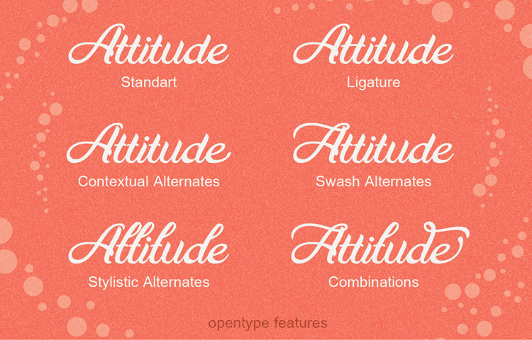 Badmood is a hand-lettered script font for multipurpose usage: poster, advertisement, wedding invitation, greeting card, branding, t-shirt design, etc.It contains 237 glyphs in total and 60 alternative characters to play with. Mix and match the alternative characters in Badmood to create an attractive message or a hand-made content. The alternative characters in Badmood font were divided into several OpenType features such as Contextual Alternates, Stylistic Alternates, Stylistic Sets, Swash and Ligature. The OpenType features can be accessed by using OpenType savvy program such as Adobe Illustrator and Adobe InDesign.