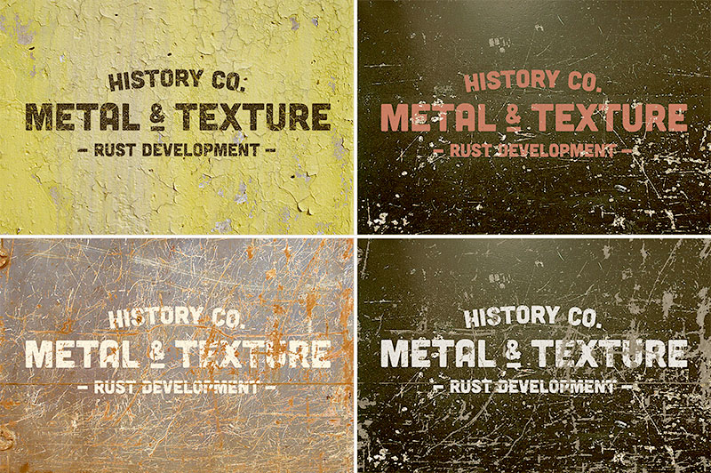 8 Rust Metal Overlay Textures Mock-ups. Best for vintage logos, badges or insignias.