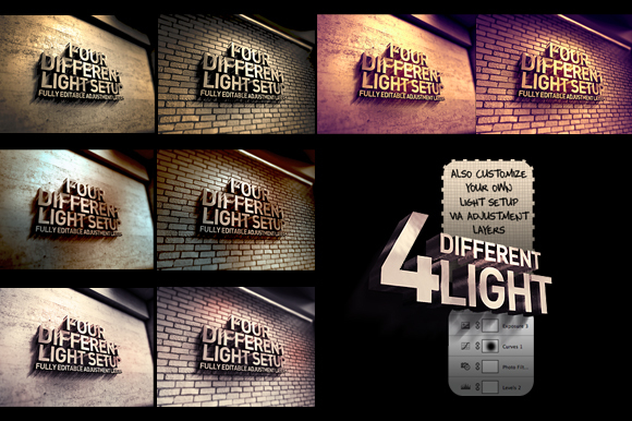 Photorealistic grunge style 3D Logo Mock Up. If you need a grunge and abstract style presentation of your logo never miss out this file. Turn your 2d graphics into 3d in seconds. Just edit smart object layer and go. There are 4 light setup made with adjustment layers. You can use one of them or you can make your own. Fully layered and seperated shadow and bevel options.