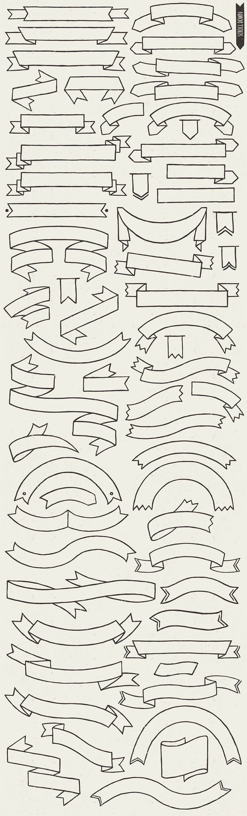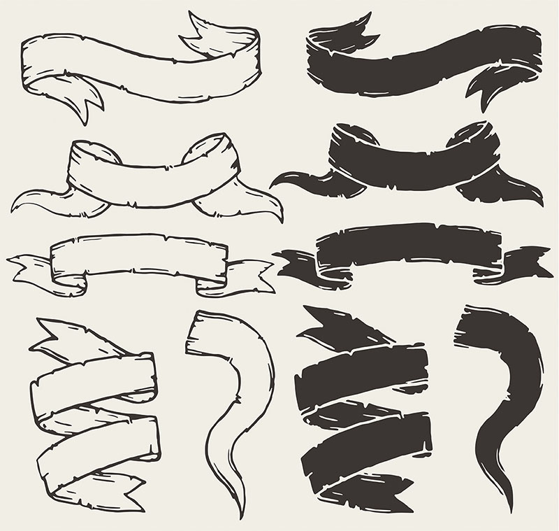 An absolutely new collection of hand drawn ribbons, the ribbons are perfect for web and for print as well. Just chose the one or more that fits to your needs, add a texture and, yaay! You got a trendy, hand drawn touch to your project. The ribbons are excellent for logos, labels, stamps, invitations, posters, t-shirt designs, packaging, stationery, advertising e.t.c.