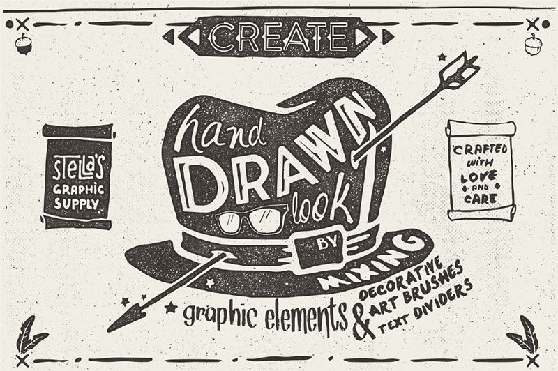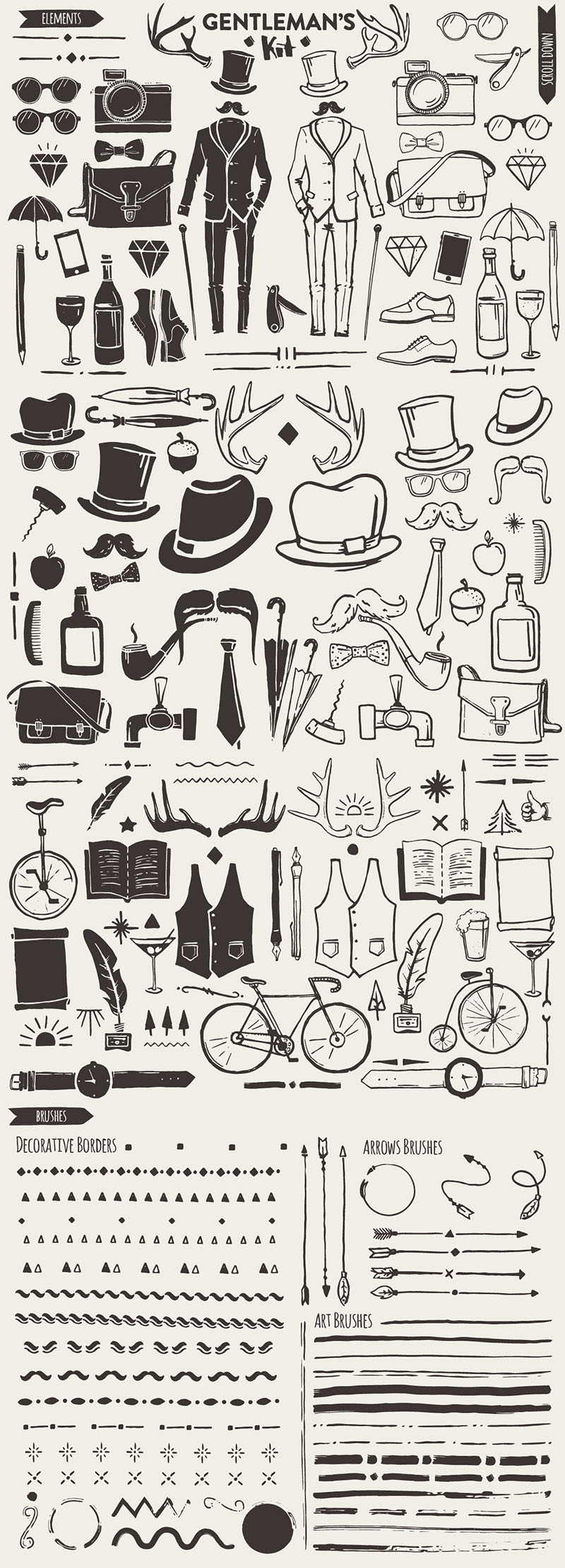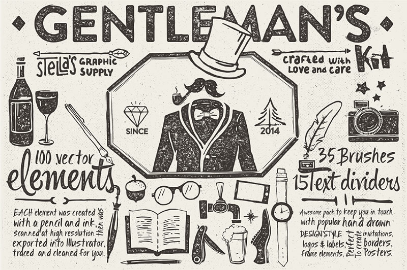 Gentleman’s kit is a pack of over 100 hand sketched graphic elements and a set of