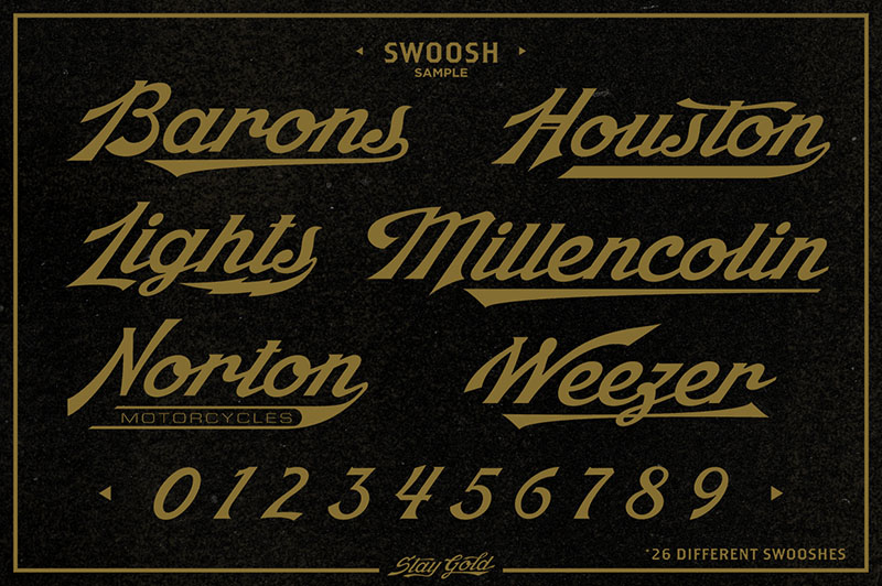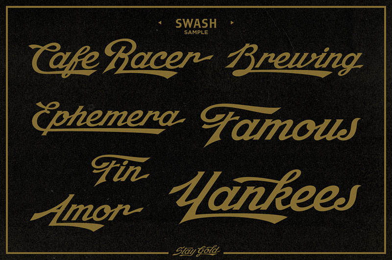 Stay Gold Script is a highly usable, powerful typeface. Perfect for everything from street wear brand to wedding invitations, sports team logos to band logos. Use it however you see fit. Just one thing – it’s not designed for all-caps settings.