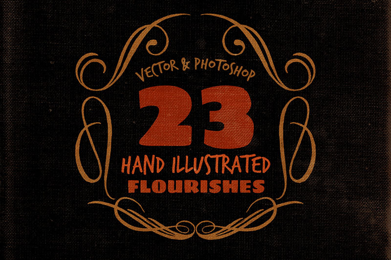 4E. 23 Hand Illustrated Flourishes by Cruzine Design