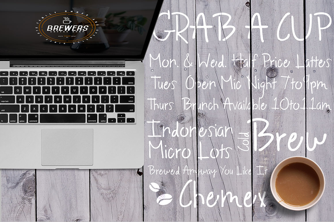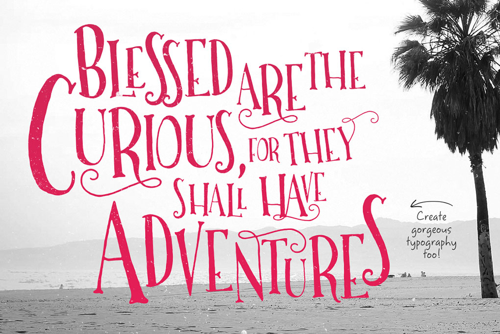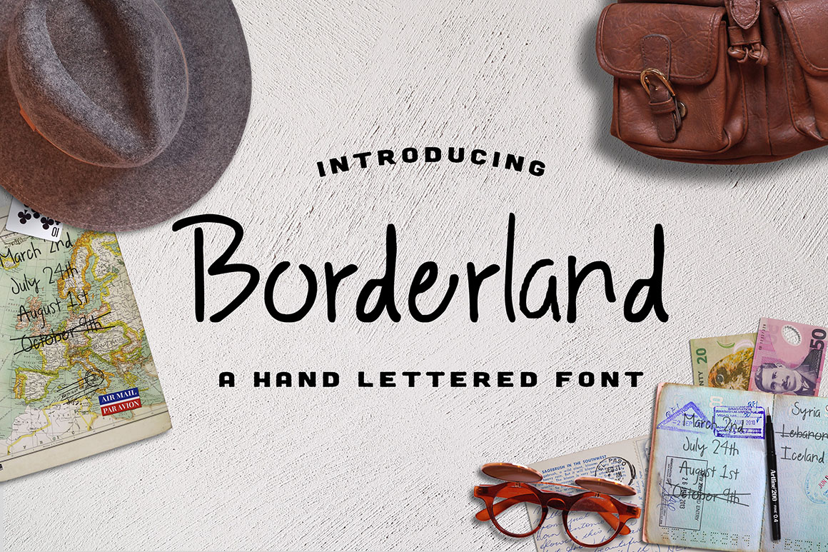 Borderland is an adventurous, hand-lettered sans serif font inspired by the pages in your Travel Notes journal. It’s full of those hand-written imperfections that make your designs come to life! This sans serif is perfect for logos, typography, prints, and accent pieces on your restaurant menus.