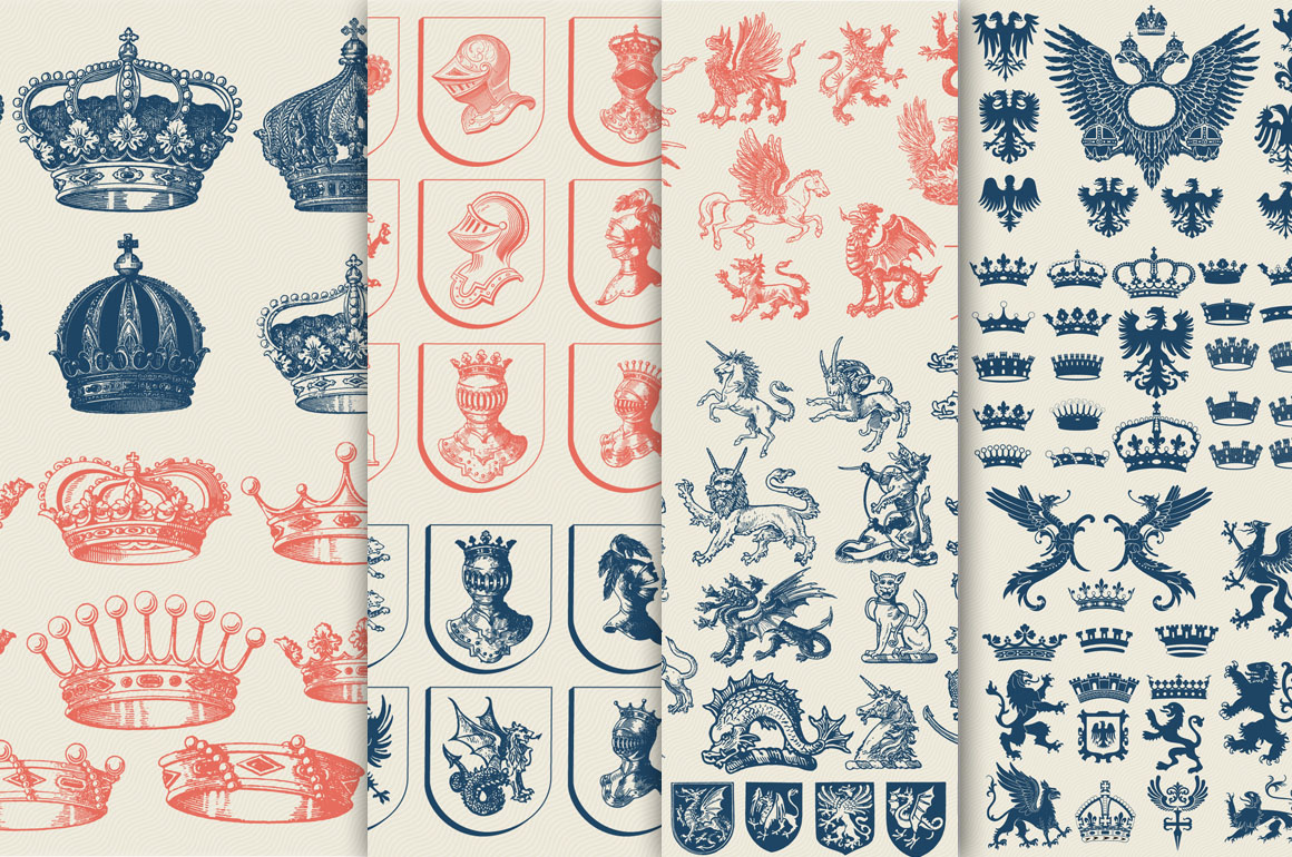 Mega Heraldic set. 125 elements, 170 Mb. Included: AI, Pdf, Eps, and PNG transparent files!