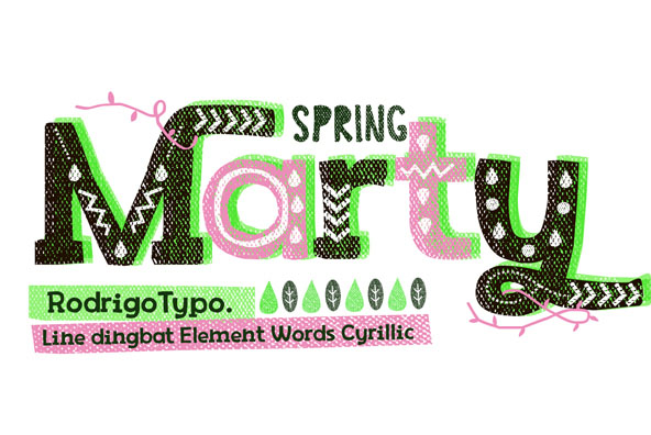 Variants of Marty, to generate many more entertaining titles, playing with shapes, lines, also contains the Cyrillic alphabet was created with the intention of making a more visually friendly title, this typeface.