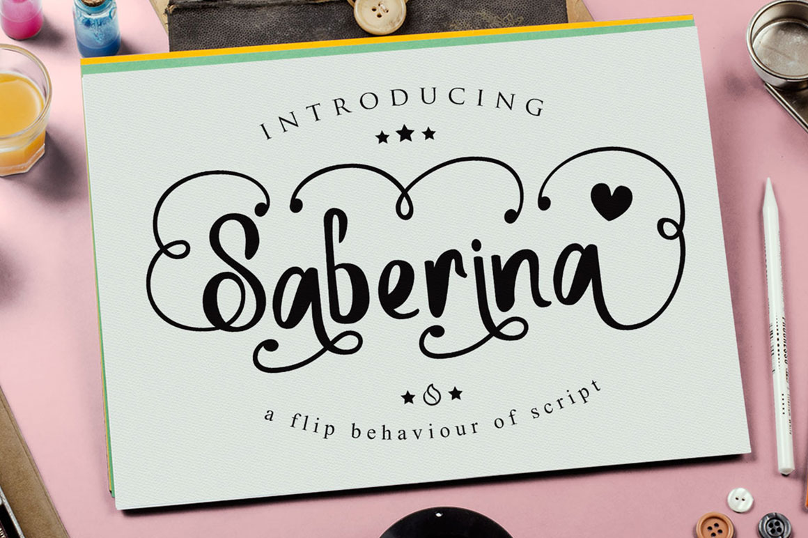 Saberina is handwritten with unusual behaviour of standard lettering. as we know the basic lettering is down thick and up thin, but for the Saberina I tried to filp it become down thin and up thick, and this is it a new style of lettering 🙂