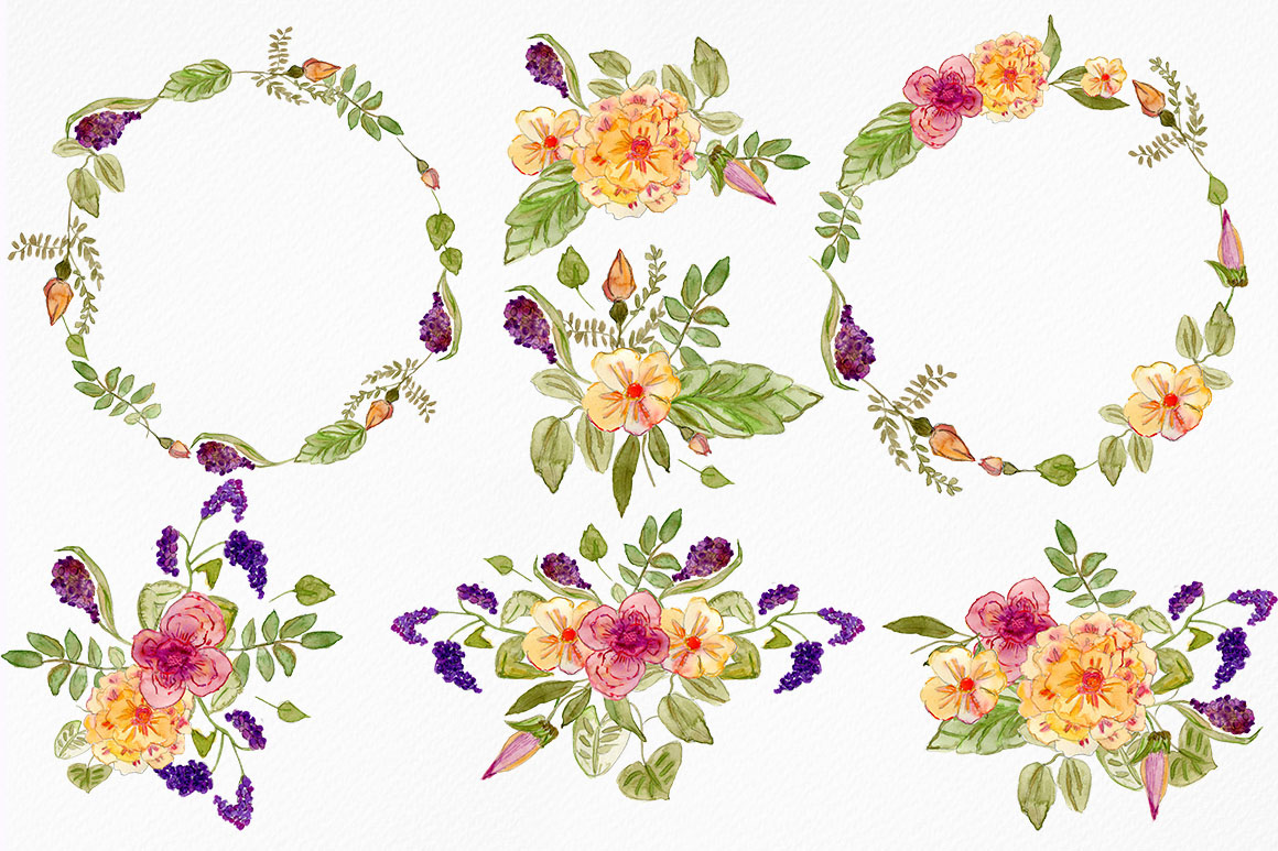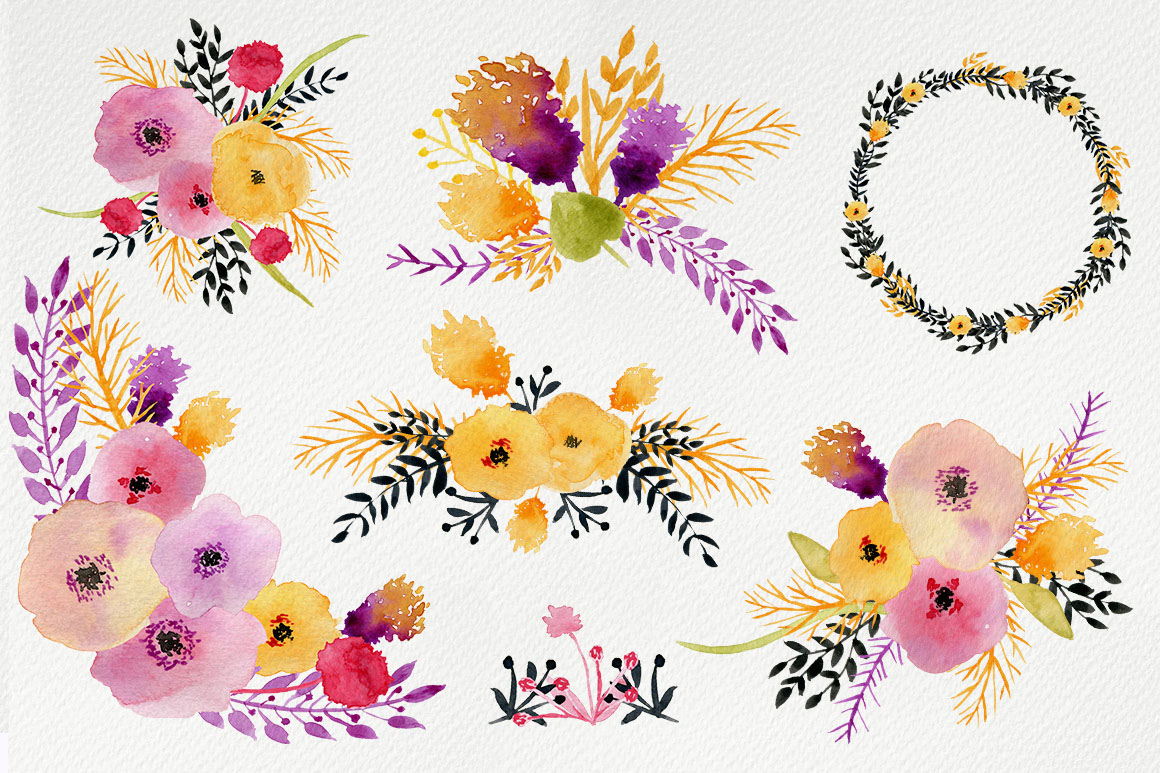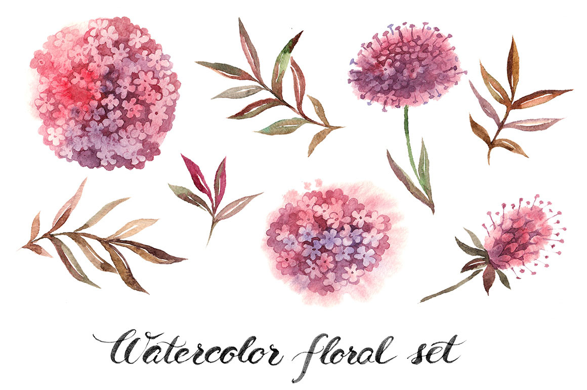 C6. Watercolor Floral Set by Elena Pimonova