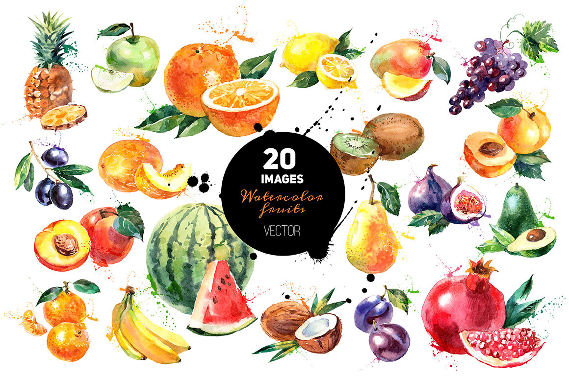 C1. 20 Watercolor Fruits Vector by Elena Pimonova