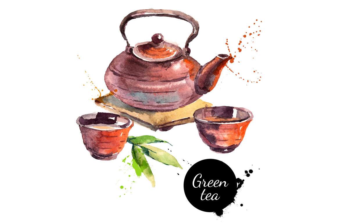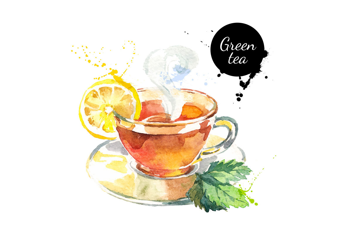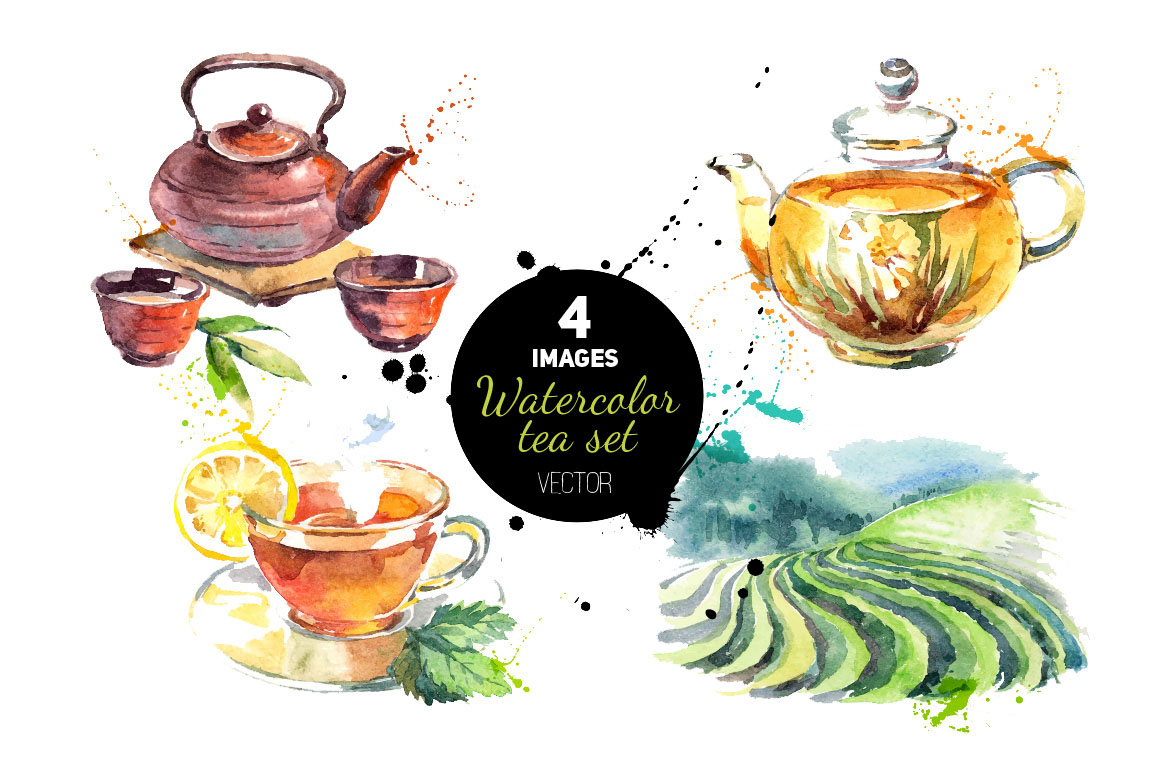 C4. Watercolor Tea Vector Set by Elena Pimonova
