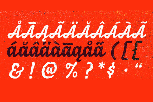 Balzac one Script typeface, heavy, rough with alternate set of numbers and accompanied a set of ornaments, designed by Alejandro Leiva.