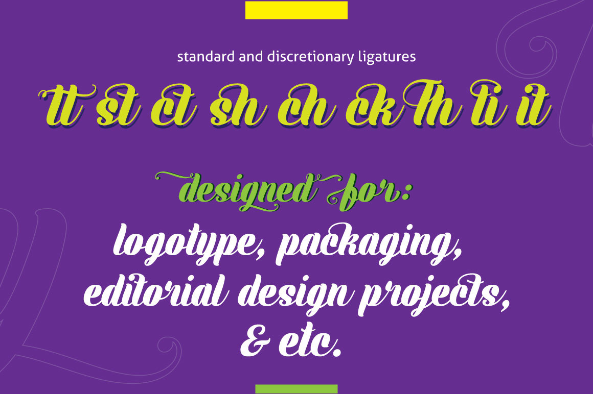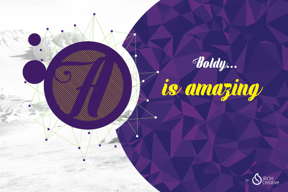 Boldy is beauty big font, simple, clean, elegant and flexible. With 456 of glyphs including multilingual support, standard ligatures, discretionary ligatures, contextual alt, swash and stylistic alternates. Can be used for various purposes; headings, logos, wedding invitation, t-shirt, signage, posters, badges, editorial design, packaging design, etc.