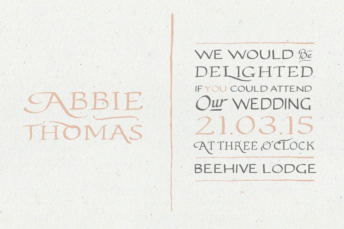 Abbie Script is a beautiful handwritten script font that has been hand drawn, scanned, and digitized for you to enjoy. The primary aim with Abbie Script was to create a readable and elegant script font that could transform into something creative, unique and eye catching within a few clicks. There are 480+ glyphs in Abbie Script and plenty of stylistic alternatives for you to get artistic with. Also, Abbie Script is multilingual and covers all Latin 1 Glyphs. BONUS PREMIUM FONT! After creating the preview images for Abbie Script, I couldn’t get away from using Brixton Hand Sans with Abbie Script, so why not throw that in the mix for free?
