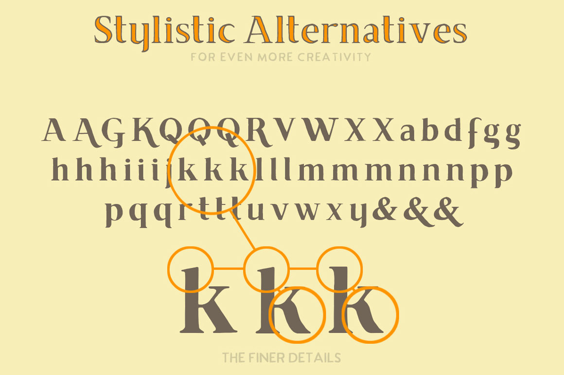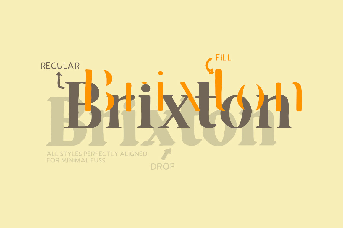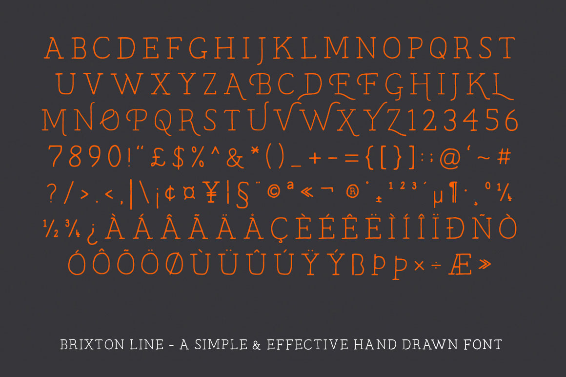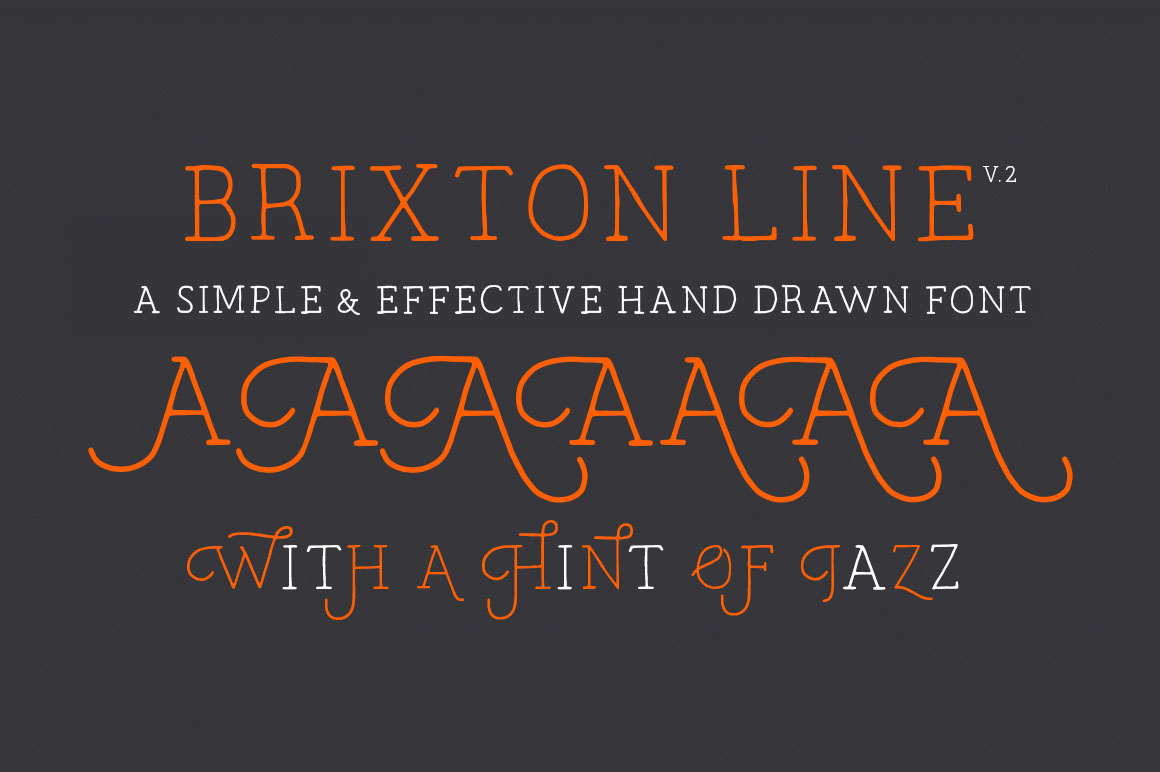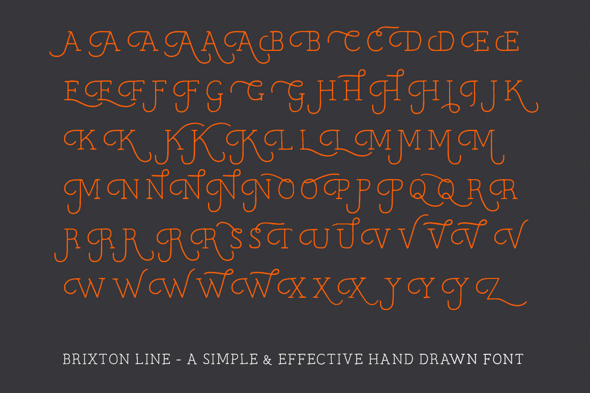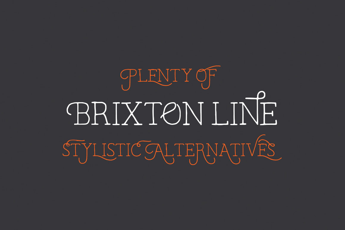 Brixton Line is a simple and effective handcrafted serif font but within a few clicks you can transform Brixton Line into a unique and creative headline/logo/design. With over 80 stylistic alternatives to choose from this font is great fun to work with!