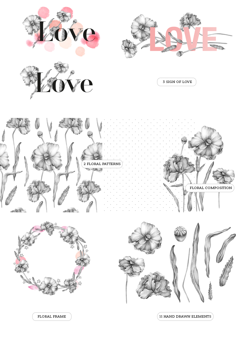 C11. Set of Florals hand drawns by SoNice