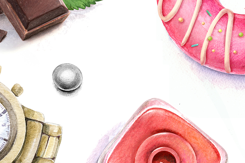 Set of watercolor icons. Hand drawn illustration. It can be used as a design of icons, posters, fabric, notebooks and so on.