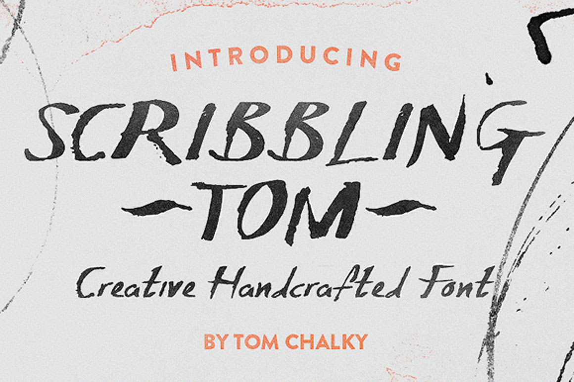 I had so much fun creating Scribbling Tom, the process was unlike any I have gone through before. It started with a hand full of paper and quickly writing (in uppercase and lowercase) the phrase ‘the quick brown fox jumps over the lazy dog’ 30 or so times. I scanned in the results, and selected the most suitable letters. The end result was, to my surprise, very effective and unique. So I continued to add to the experiment and developed the results into a full fledged font.