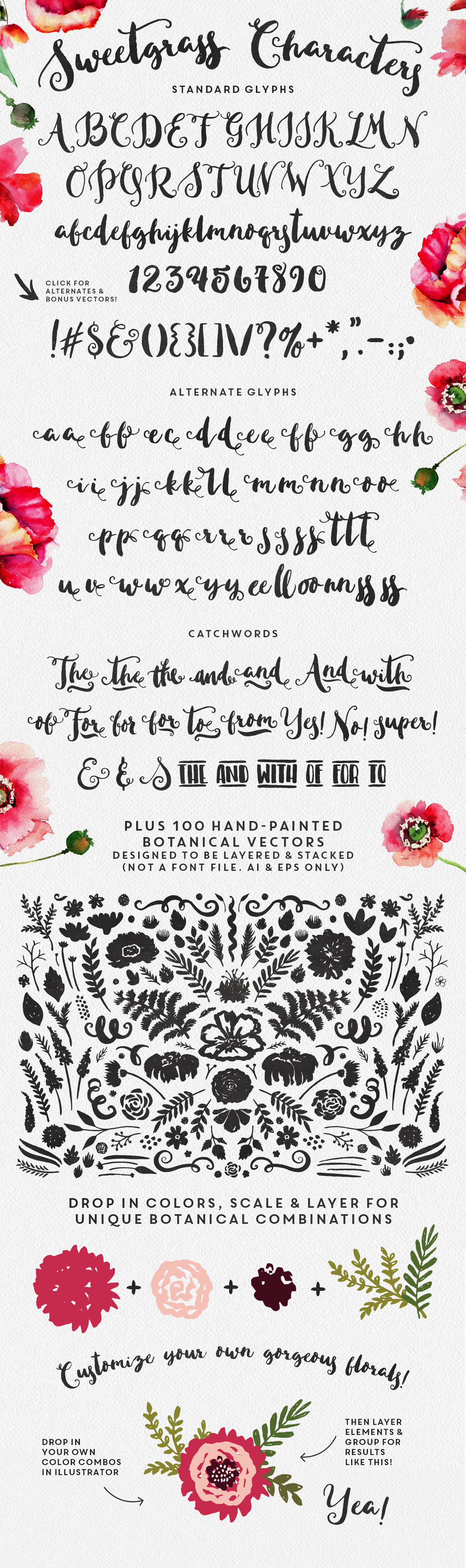 A3. Sweetgrass Typeface & Floral Vectors by MakeMediaCo.