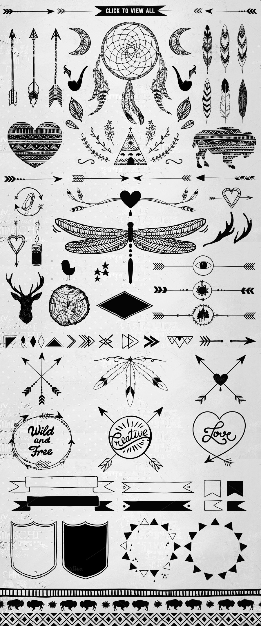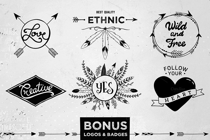Hand drawn tribal design vector pack contains all you need to create trendy logos / invitations/ greeting cards / branding identities / labels / badges / banners / prints/ patterns and whatever you can imagine.