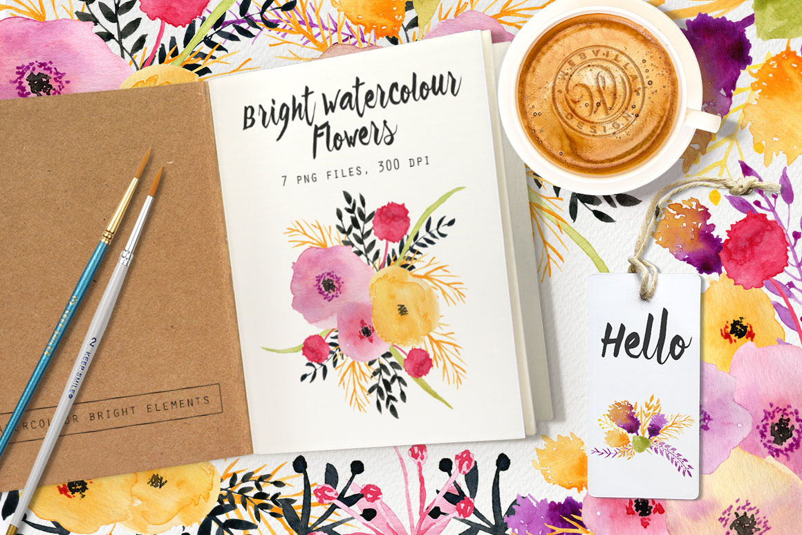 C13. Bright Watercolour Flowers by Webvilla