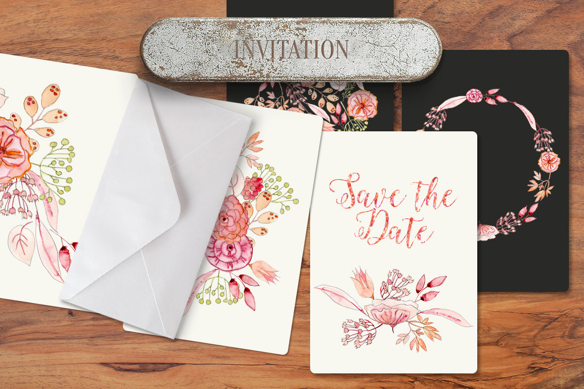 I present hand made watercolour powder flowers – Ideal for invitations, wedding invitations, handmade craft items, scrap booking, printed paper items and more. 7 x png file – 300 dpi (without background). Size: from 4 – 8″