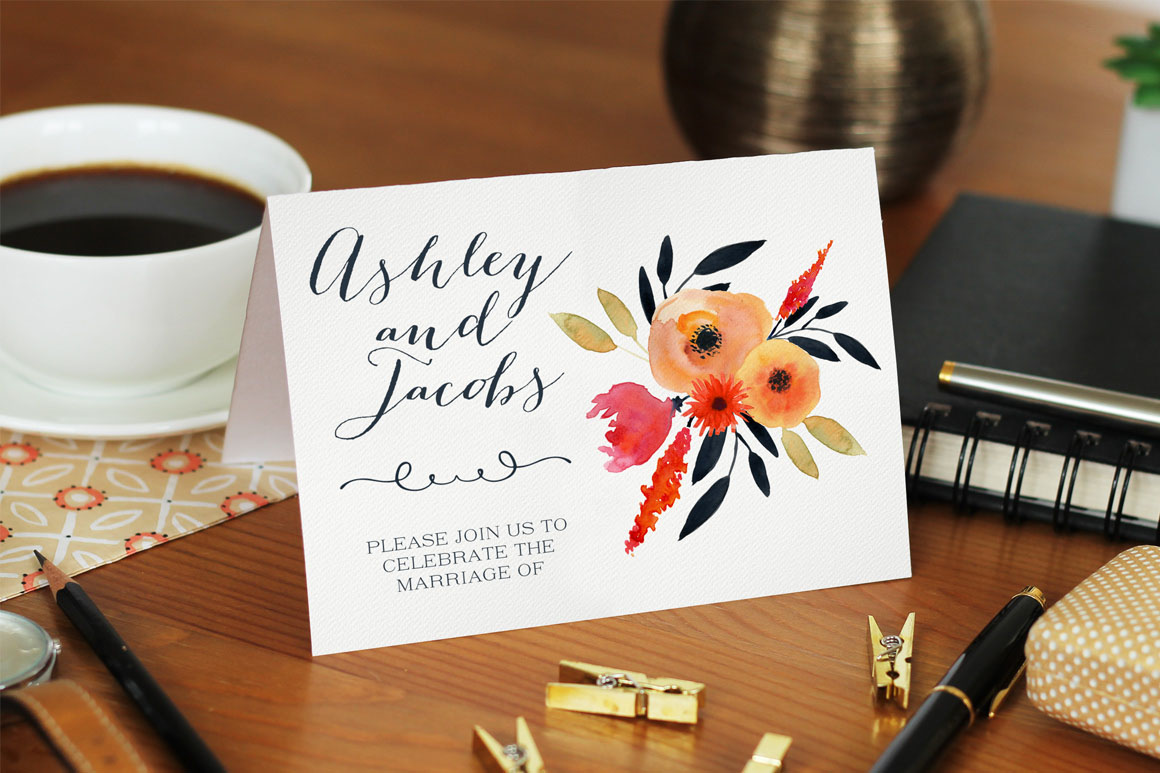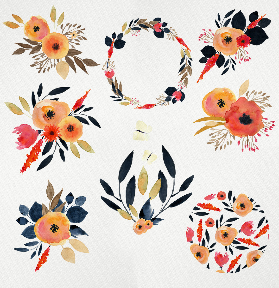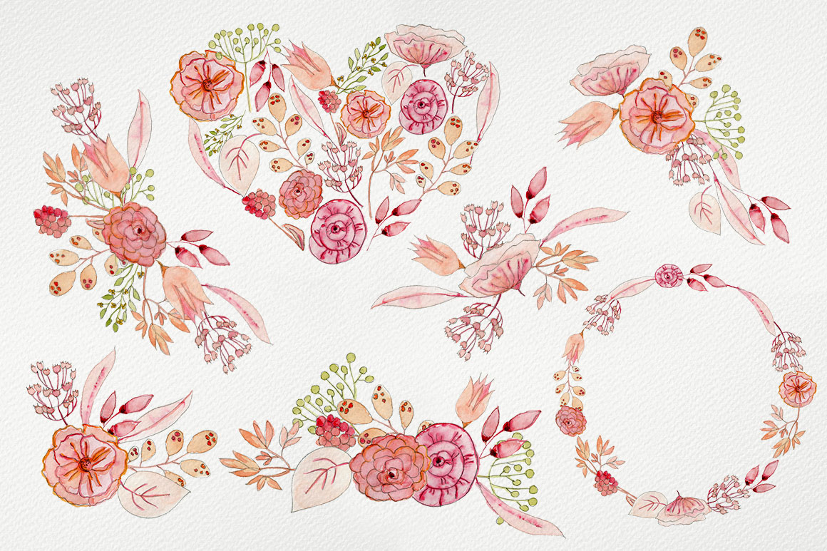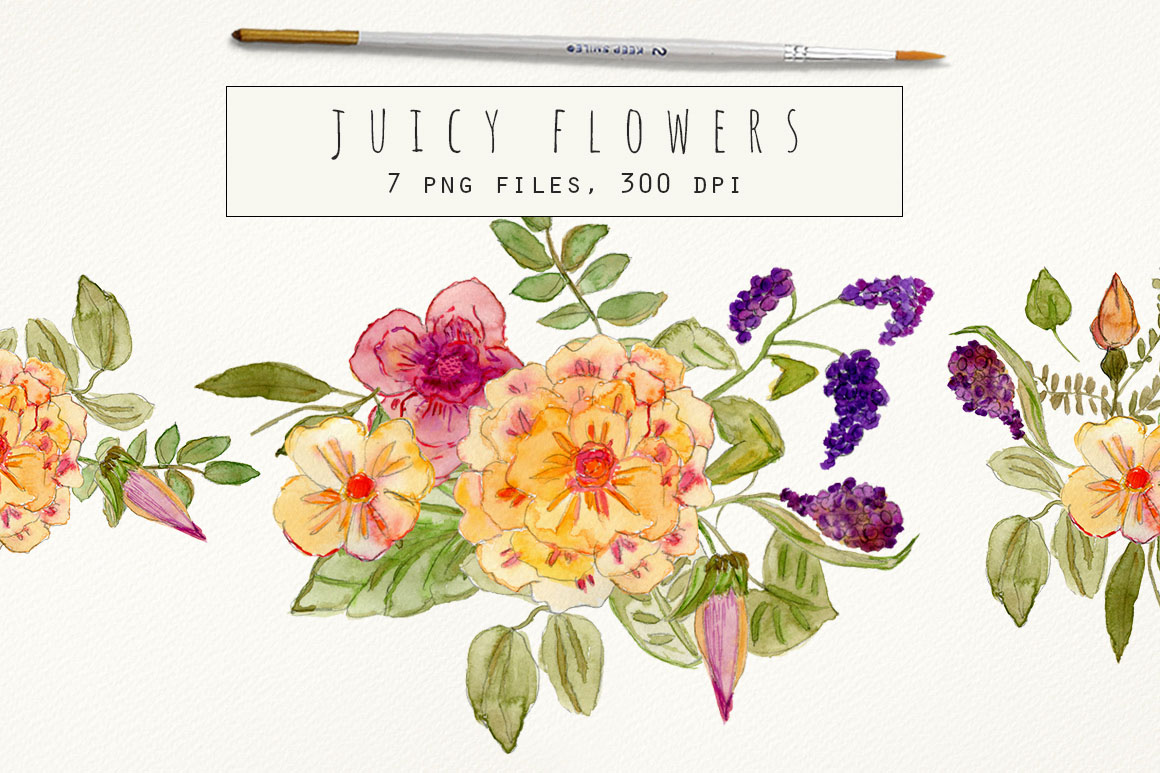 Juicy Flowers handmade watercolour clipart – Ideal for invitations, wedding invitations, handmade craft items, scrap booking, printed paper items and more. 7 x png file – 300 dpi size: 6″- 10″