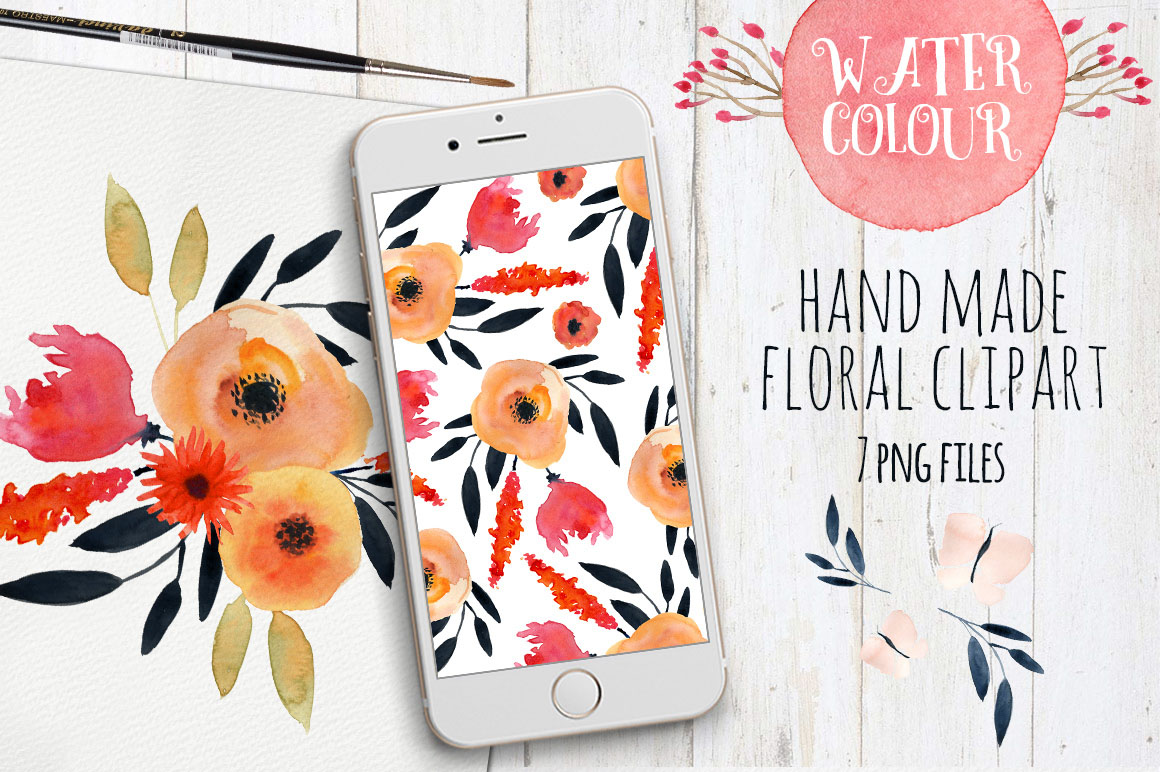 I present Watercolour Flowers Clipart – Ideal for invitations, wedding invitations, handmade craft items, scrap booking, printed paper items and more. 7 x png file – 300 dpi size:8″ 1 digital paper – size 12×12″, png 300dpi, transparent background.