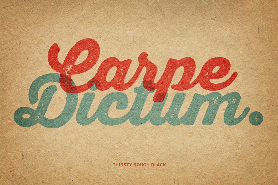 Thirsty Script Rough from Yellow Design Studio is the warm and weathered version of Thirsty Script with texture that captures the authentic qualities of letterpress printing. It’s highly customizable with four alternate versions of every weight ranging from very light to heavy distress. Because it’s remarkably detailed, it looks great even at large sizes. For extra customization and fun, it includes a set of matching shadow layers and texture pieces.