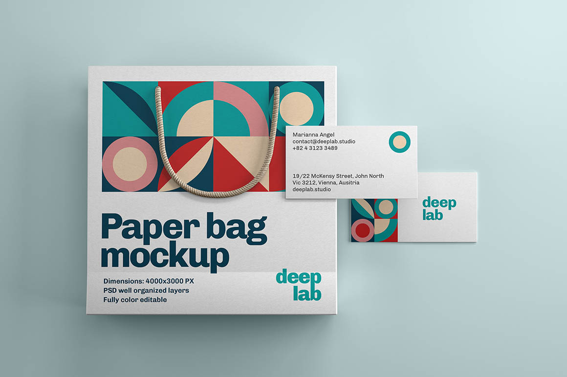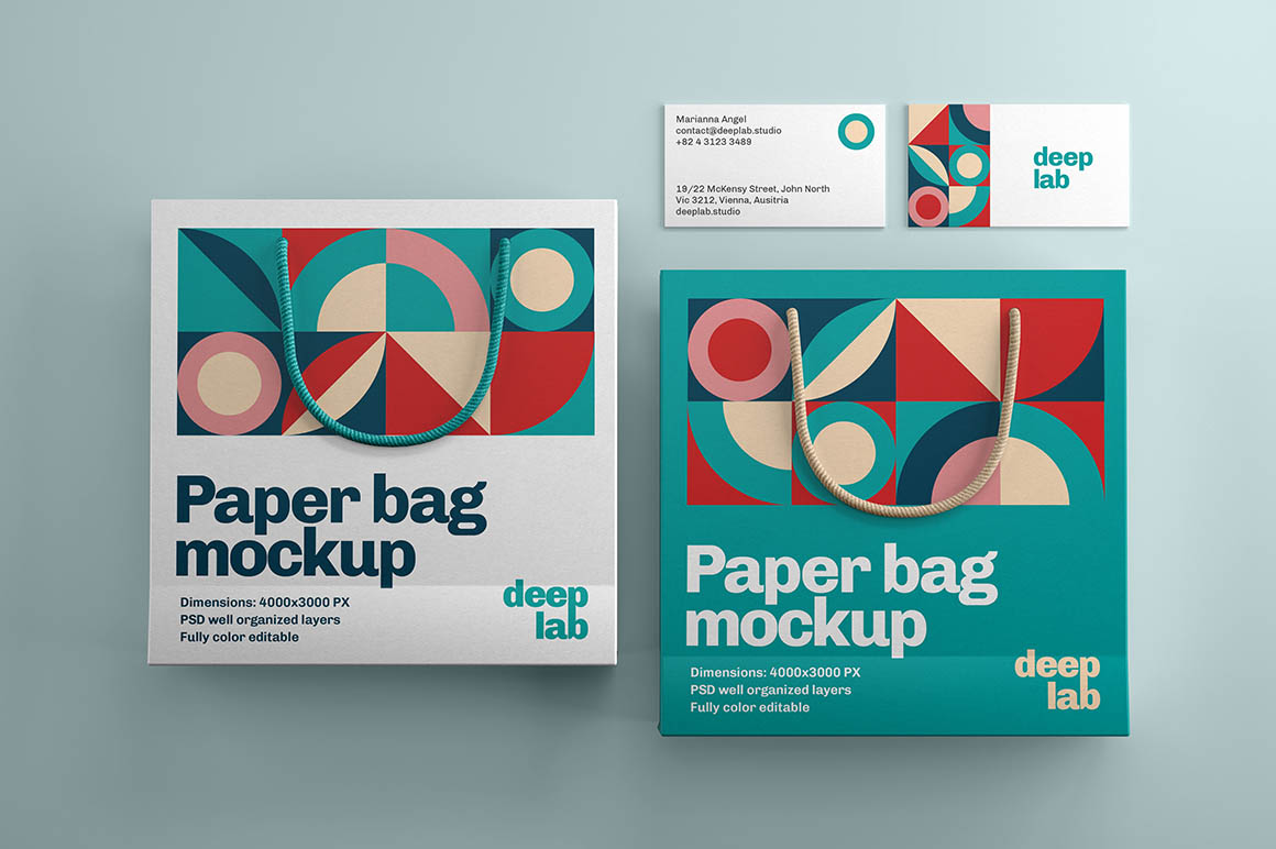 3 FREE paper bag & business card – presentation or branding mock-up template from Deep Lab. Download and enjoy 😉
