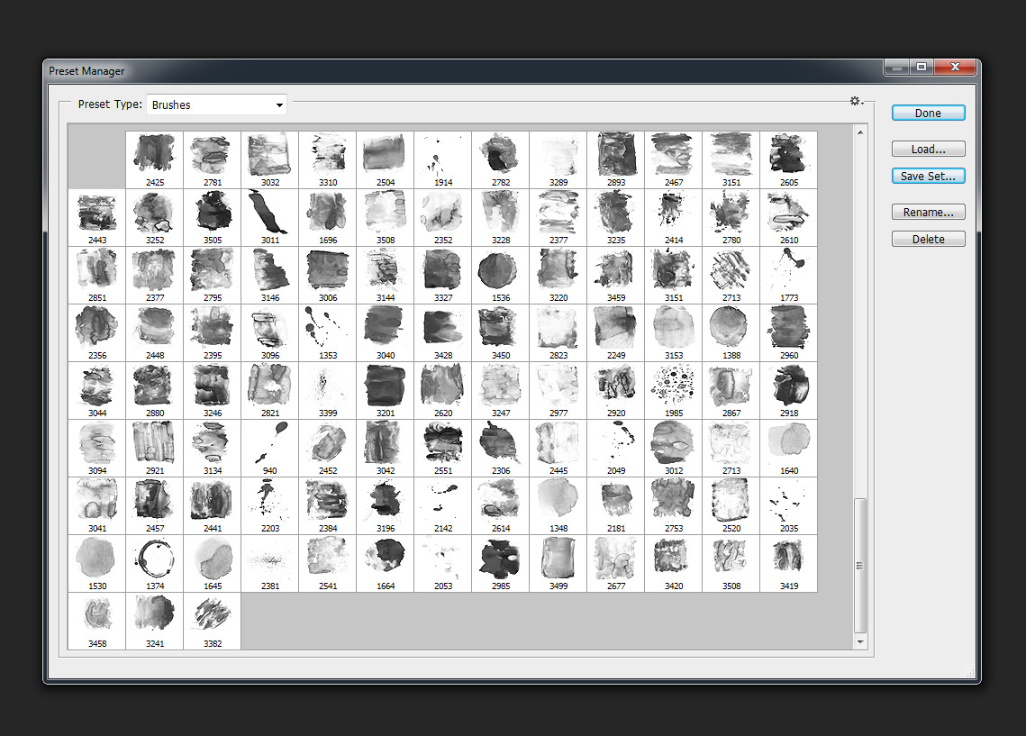 Lot of grunge shapes or watercolor brushes – ABR file format