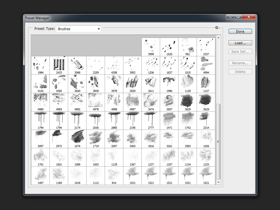 - Lot of grunge shapes or watercolor brushes – ABR file format