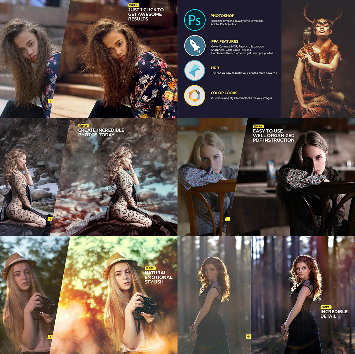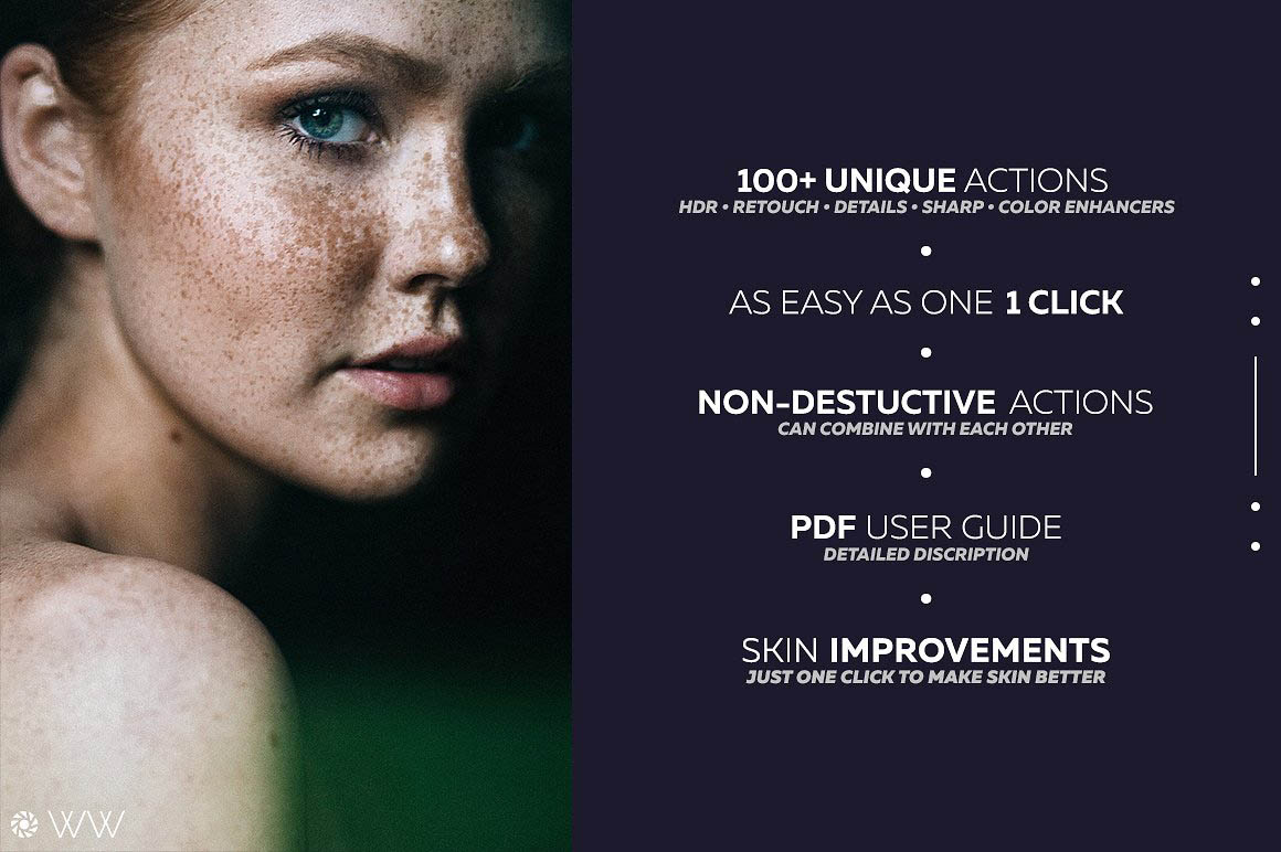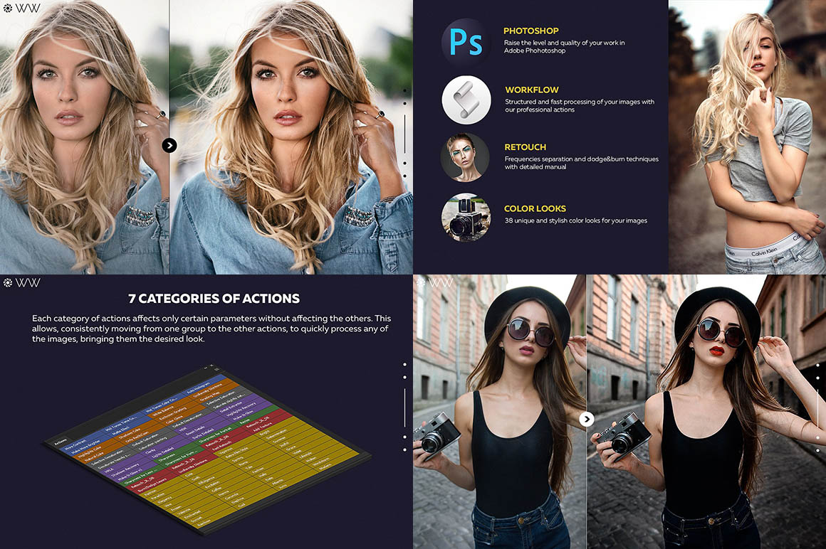 Save hours of your time and bring your workflow to next level by using the most advanced Photoshop Actions for enhancing and retouching your photos.
