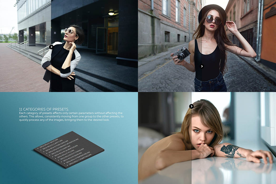 Enhance your images with this new set of presets for Lightroom. This collection of 42 presets for photographers and designers will help you get the look of instagram and vsco filters, cross-processing color look, grunge, vintage, and modern looks! For the unique results used tools: camera calibration, tone curve, HSL (hue, saturation, luminance).