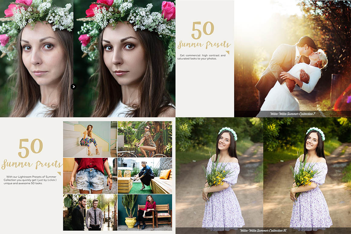 The “Summer Lightroom Presets” collection powered to create amazing looks for photographers and graphic designers. These presets are designed to streamline your workflow, you can get 50 unique results just by 1 click.