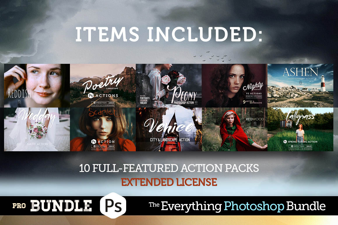 10 full-featured packs for your creative photography process from Presetrain Co. COMPATIBILITY: Adobe Photoshop CS4 and higher, including CC 2014/2015. Windows & Mac compatible.